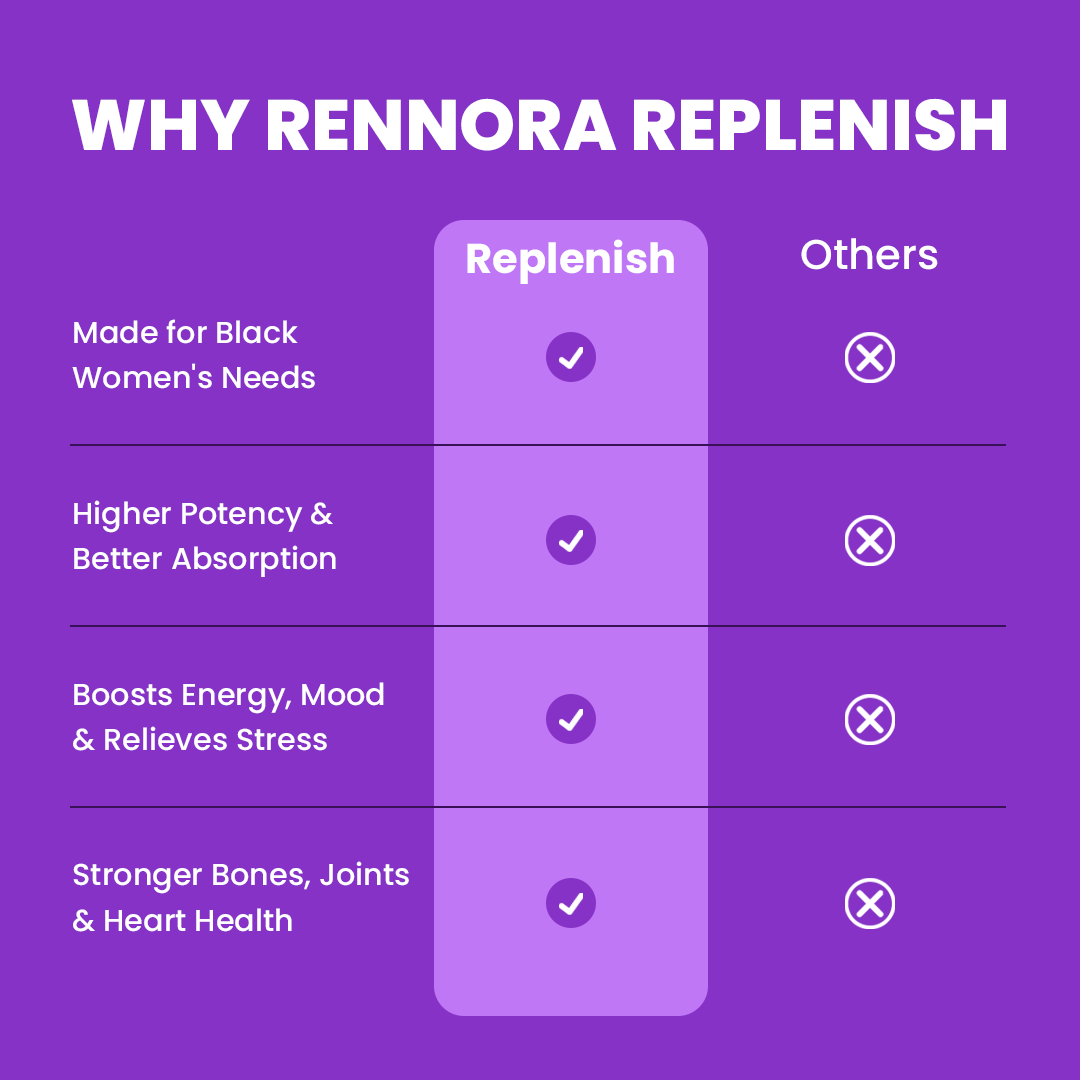 Rennora Replenish is made specifically for Black women who are tired of being tired and want real solutions.